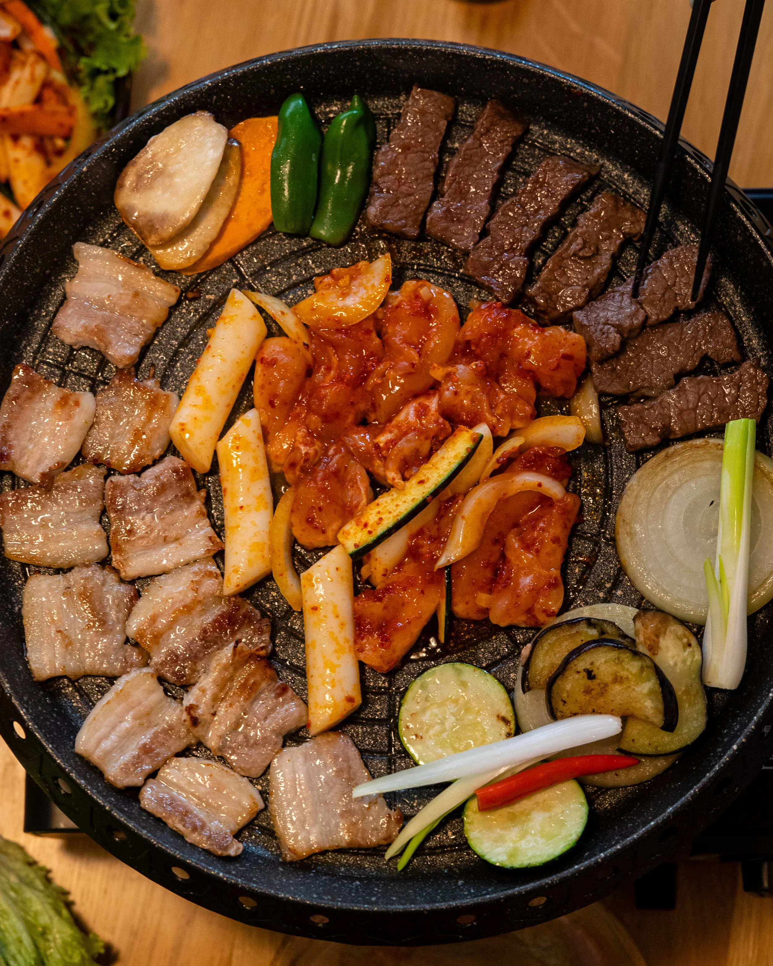 Aber keine Sorge – ihr müsst auf nichts verzichten! Unsere Korean BBQ Menüs gibt’s weiterhin – nur wird das Fleisch jetzt in der Küche für euch frisch gegrillt und direkt an den Tisch gebracht. Der Geschmack bleibt natürlich genauso lecker wie immer!